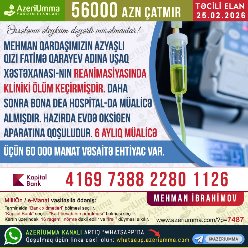 Sizin edəcəyiniz hər bir yardım – kiçik və ya böyük – bir uşağın sağalma ümidinə çevrilə bilər. Gəlin birlikdə bu ailəyə dəstək olaq.